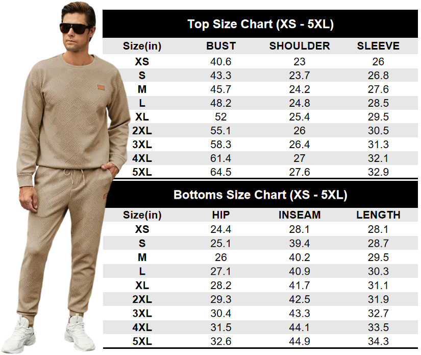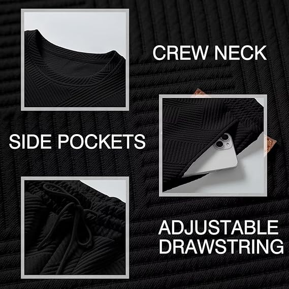 High Quality Fabric: Mens 2 piece sweatsuits sets is made from premium soft geometric texture fabric, which not only has visual beauty, but also adds a unique texture to the fabric.The mens casual jogging sweatpants with elastic waistband, adjustable drawstring, 2 side pockets and one back pockets, sweatpants with ankle cuffs keep the legs length.Dokotoo Men's 2 Piece Sweatsuits Outfits Casual Crewneck Jacquard Sweatshirt Joggers Sweatpants Set Tracksuit High Quality Fabric Classic Design Perfect for Fall Winter SpringDokotoo Men's 2 Piece Sweatsuits Outfits Casual Crewneck Jacquard Sweatshirt Joggers Sweatpants Set Tracksuit High Quality Fabric Classic Design Perfect for Fall Winter SpringStyle: Mens lounge sweatsuits sets with classic and stylish design,great for fall, winter, spring and can be worn for jogging or leisure all day long.
