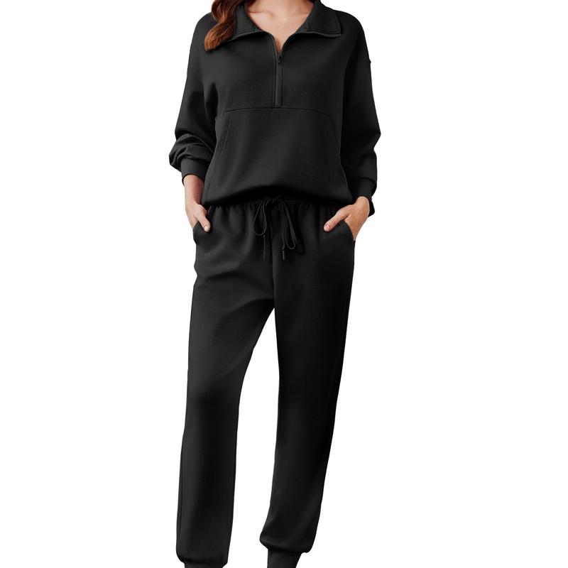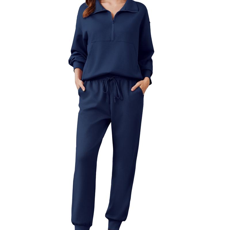 Versatile: Lounge-style set, dress up/down easily, long sleeves (warm/coverage), cuffed pants (trendy) – ideal for errands, meetings, lounging