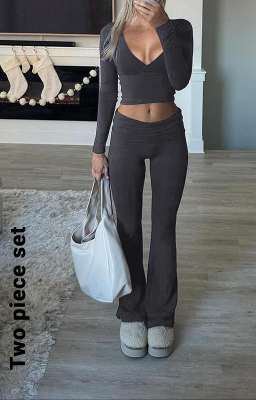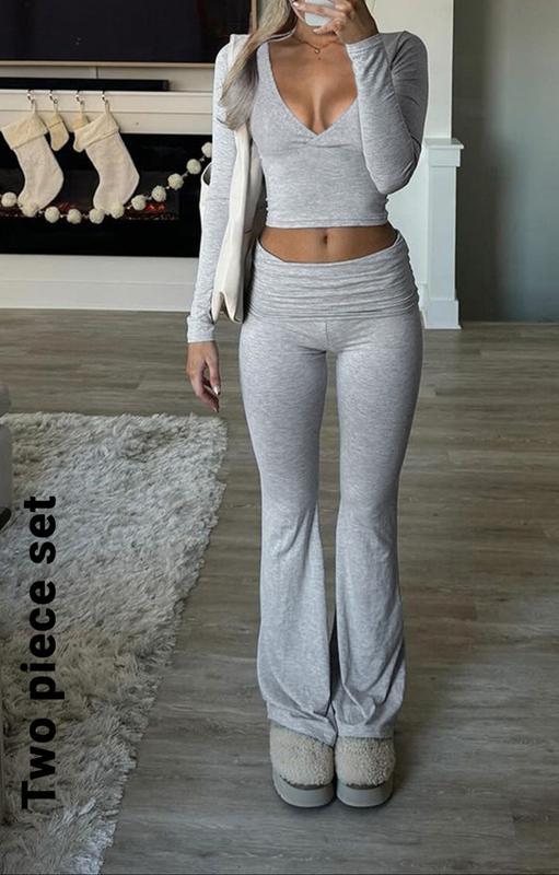 Elegant Casual V-Neck Long Sleeve Two-Piece Set, Slim-Fit Crop Top & Pants for Fall Winter, Moderate Fabric, Plain Color DesignElegant Casual V-Neck Long Sleeve Two-Piece Set, Slim-Fit Crop Top & Pants for Fall Winter, Moderate Fabric, Plain Color DesignElegant Casual V-Neck Long Sleeve Two-Piece Set, Slim-Fit Crop Top & Pants for Fall Winter, Moderate Fabric, Plain Color DesignElegant Casual V-Neck Long Sleeve Two-Piece Set, Slim-Fit Crop Top & Pants for Fall Winter, Moderate Fabric, Plain Color Design