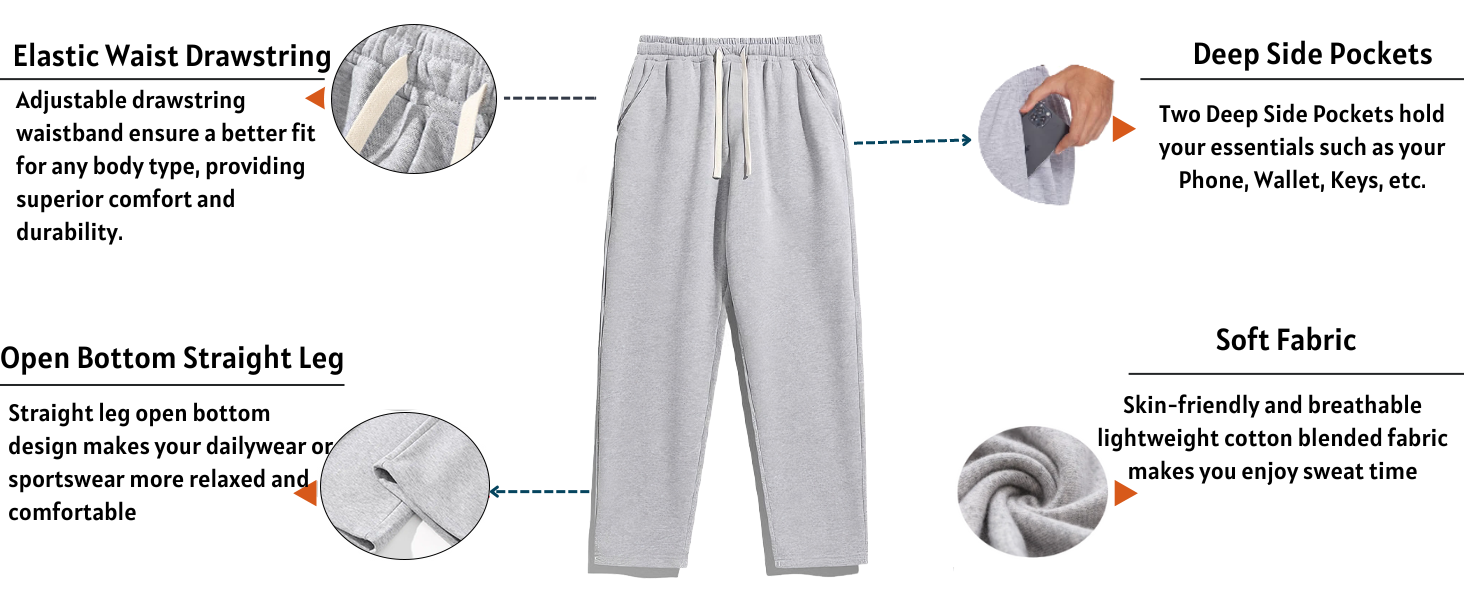 - 【Suitable Occasion】Versatile pair of sweatpants that go great for all occasions. These men's open-bottom athletic pants with loose fit design meet different lounge, athletic, home, and daily wear needs. Go for a run, hit the gym, or enjoy your favorite yoga class with our awesome pants.