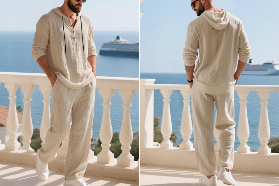 Men's Trendy Linen Hooded Two-Piece Set 13578167