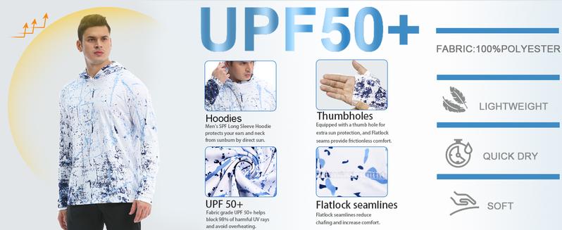 Men's UPF50 + UV Sun Protection Long Sleeve Hoodies Thumb Holes T-shirts