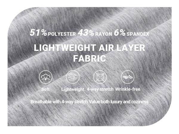 Fabric Type: Made from lightweight air layer fabric with breathable four-way stretch for luxurious comfort.
