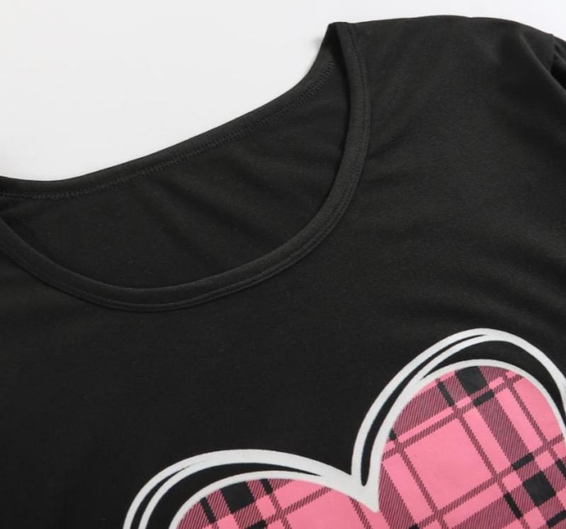 Two-piece Set Long Sleeve Heart Print Tee & Plaid Print 13583696