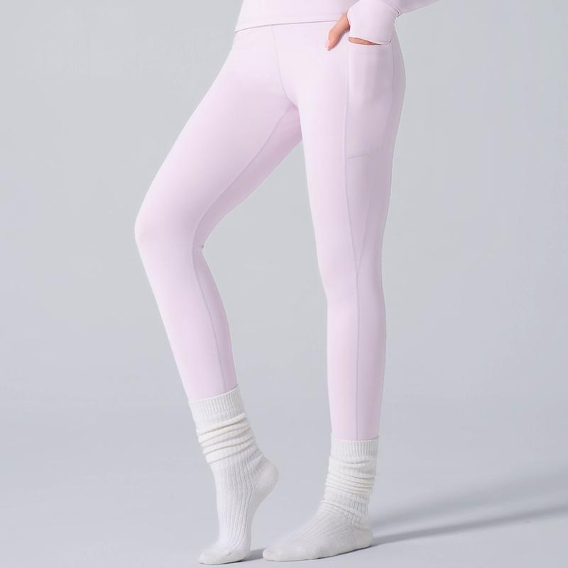 Buttery Soft: 87% Cotton, 13% Spandex. Performance fabric exceptionally soft hand, feels weightless, moisture-wicking, not see-through and not shiny. The top offers thumbholes for a secure fit, while the leggings feature a pocket.  Both pieces are designed for comfort and style, making them perfect for various activities.  Enjoy the blend of practicality and aesthetics in this sporty yoga set.