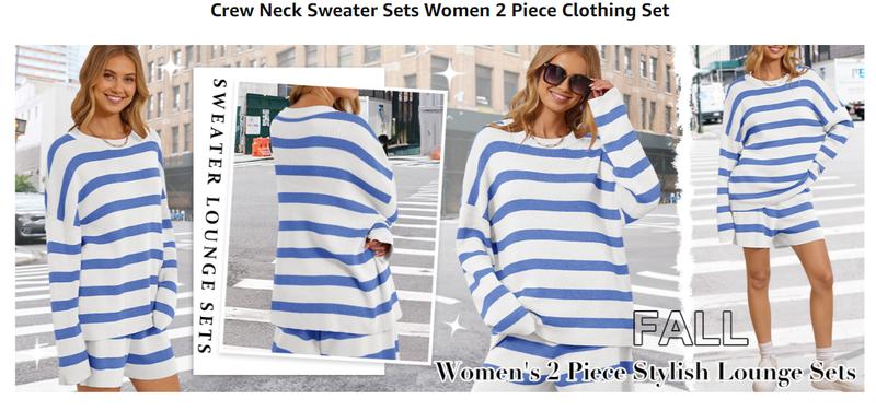 ·This chic cute striped sweater set for women is easy to dress up or down and can be worn alone or together as pajamas set or loungewear sets, try creating a casual fashion look with hats, scarfs, and boots for a warm feeling on chill days.