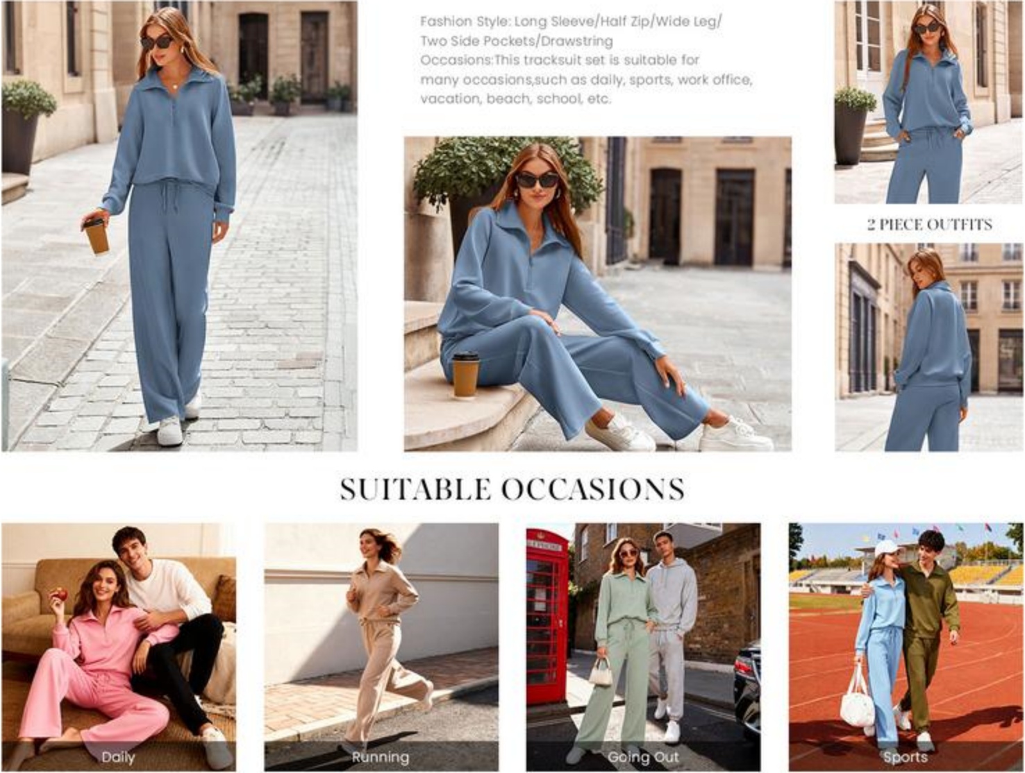 Material : 50% cotton, 45% rayon and 5% spandexThe Wide Leg Pants With Drawstring Provides A Relaxed And Flowy Fit That Flatters All Body Types.Matching set sweatpants 2 piece sweatsuit are great for daily life, gym, sport, running, active, lounge, travel, beach, fitness and home.