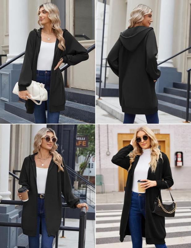 Women's casual cotton pullover with zipper and hood 13574036