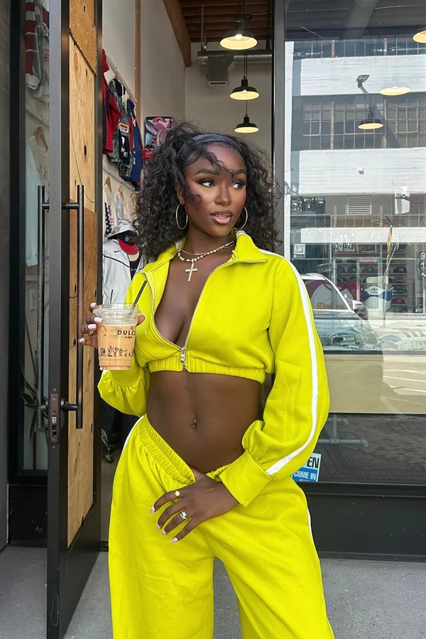Fabric: This tracksuit sets made of 50% cotton and 50% rayon.The thick fabric is soft, comfy and warm, making you feel very warm and free. Fashion Design :This Basic 2 Piece Set For Women Includes A Zip Up Sweatshirts And High Waist Wide Leg Long Pants.  Exposed Seam Combine With Solid Color Design, Which Makes The Jogger Sets More Fashion And Active.Fit Most Occasions : The Women 2 Piece Sweatsuit Is a Wardrobe Staple In Fall Or Winter. This Fall Outfits Go Well With Sneakers.