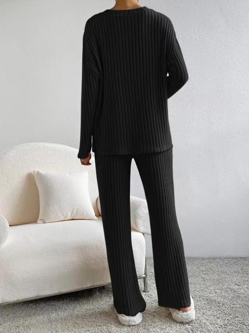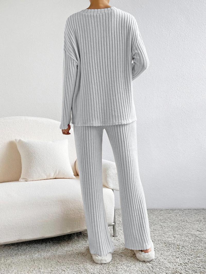 Women's Solid Drop Shoulder Pocket Lounge Set 13559198