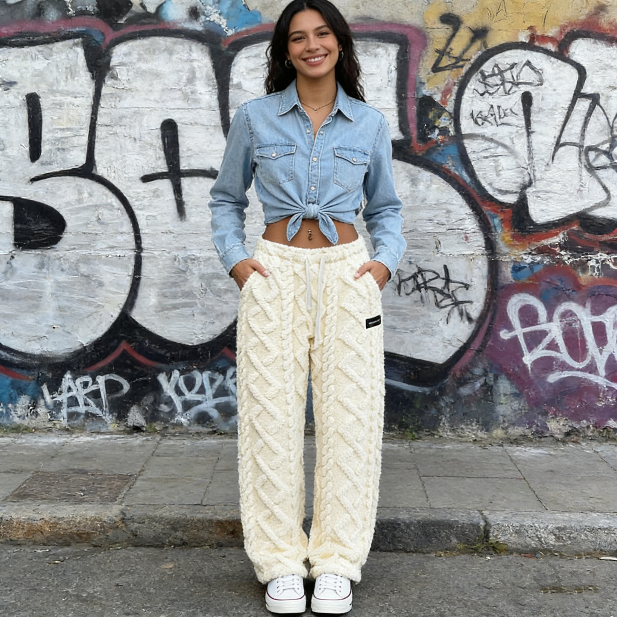 Material: Made of 85% cotton+15% rayon, ensuring high-quality, soft, comfortable and thermal, a great choice clothing for fall and winter.Women's Winter Lined Casual Pants - Jacquard Fabric & Drawstring Waist, Suitable for Home/Outdoor WearWomen's Winter Lined Casual Pants - Jacquard Fabric & Drawstring Waist, Suitable for Home/Outdoor Wear