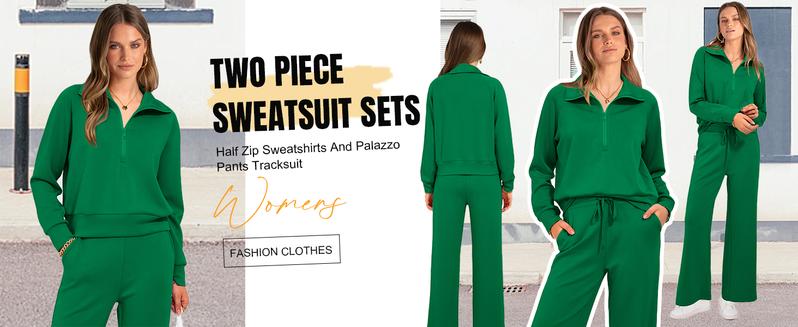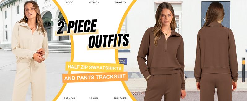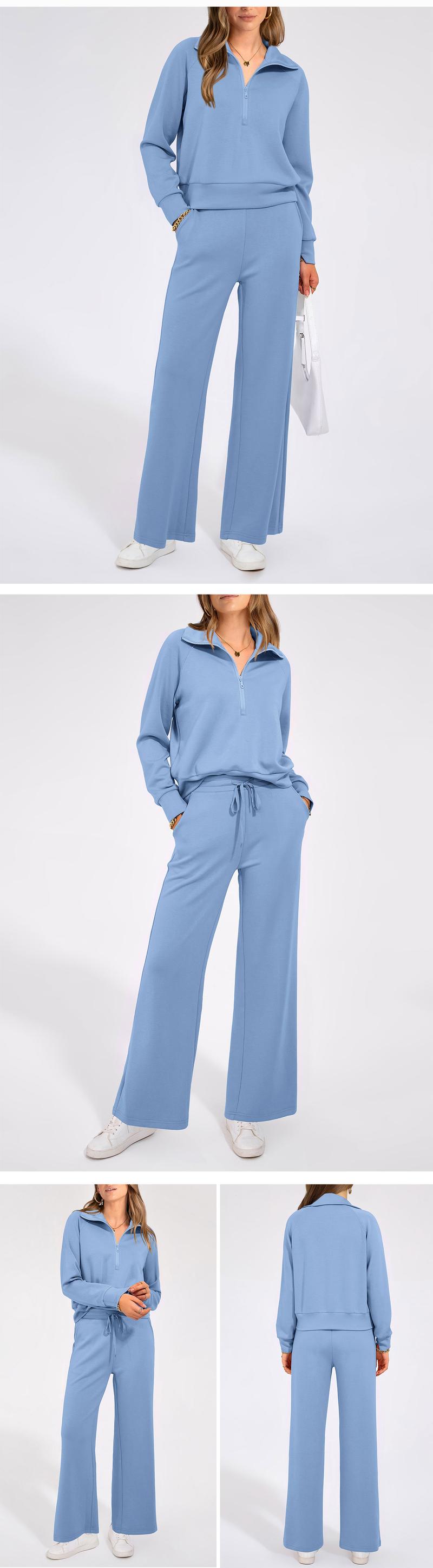 Women'swear Chic 2-Piece Set Outfits Half Zip Style Sweatshirts And Wide Leg Pants With Drawstring 13550811