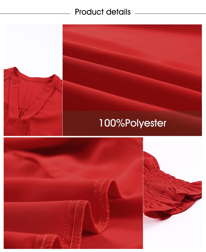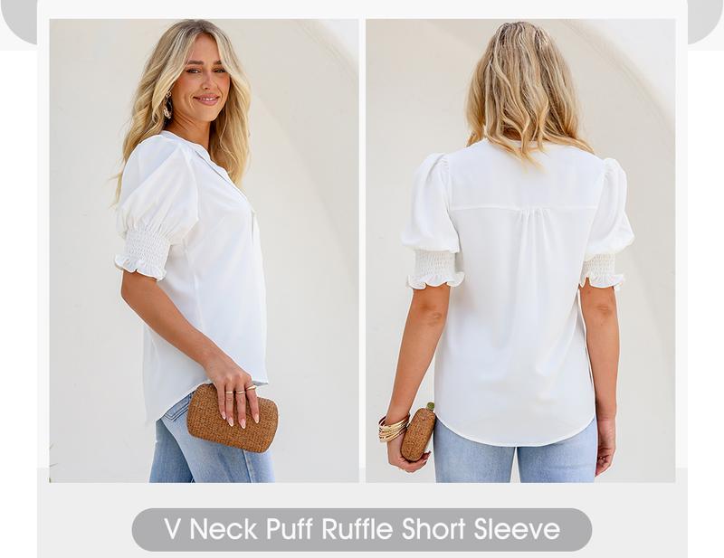 👗 Flattering Design – V-neck, puff sleeves, and a loose, flowy fit in solid colors.